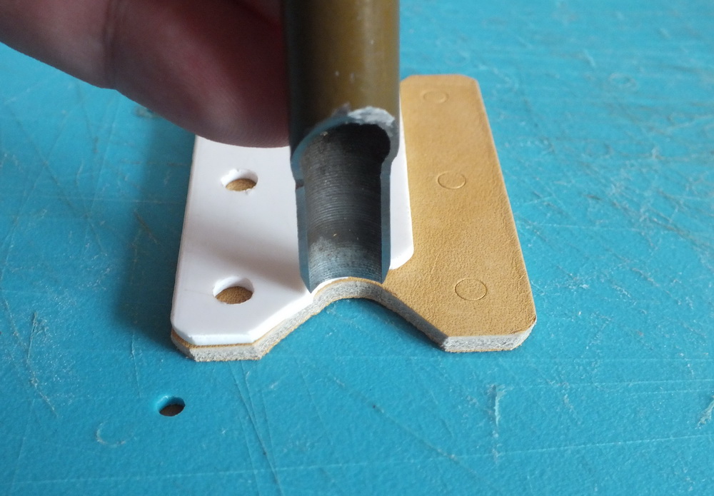 Работа получается аккуратная и однообразная. И изготовить вырубки разных диаметров. У меня две. Диаметром 9 мм., для закруглений и 3 мм. для заклепок. 32 года активно мусолю харю клинковой бритвой