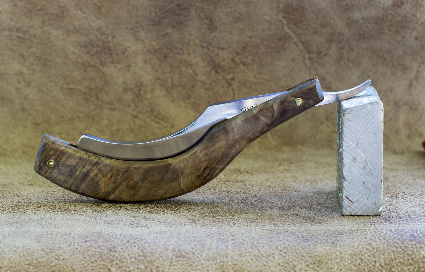 Re: Ручка - ремонт, замена, изготовлениеИз новых для производства рукоятей бритв материалов - стаб капа ореха.