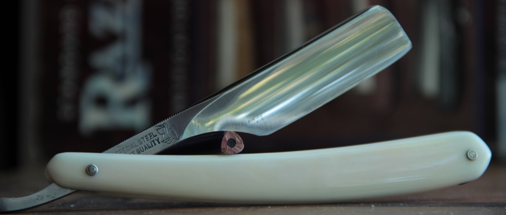 Бритва имеет толстый обушок, в связи с чем бритва несколько тяжелее своих собратьев такого размера. Из за своего веса и толстого обушка, бритва очень хорошо и легко точится без особого давления на кромку.Всё делается практически под собственным весом. Бритьё бритвой с таким полотном приближается к эталонному(ИМХО, конечно). Сталь здесь очень качественная, без каких либо проблем.Бритва совершенно непользованная.Всё оригинальное и ничего не разбиралось и не ремонтировалось. Полотно намертво впрессовано в обух. Бритва будет заточена впервые и подготовлена к бритью.