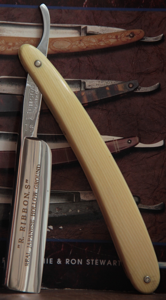 Бритва имеет толстый обушок, в связи с чем бритва несколько тяжелее своих собратьев такого размера. Из за своего веса и толстого обушка, бритва очень хорошо и легко точится без особого давления на кромку.Всё делается практически под собственным весом. Бритьё бритвой с таким полотном приближается к эталонному(ИМХО, конечно). Сталь здесь очень качественная, без каких либо проблем.Бритва совершенно непользованная.Всё оригинальное и ничего не разбиралось и не ремонтировалось. Полотно намертво впрессовано в обух. Бритва будет заточена впервые и подготовлена к бритью.