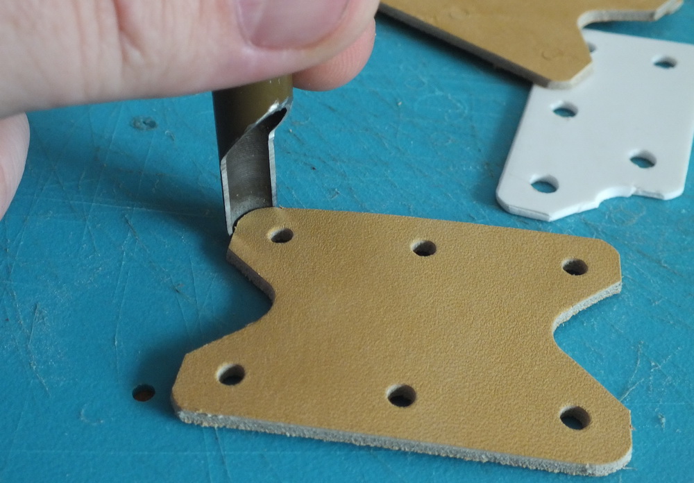 Работа получается аккуратная и однообразная. И изготовить вырубки разных диаметров. У меня две. Диаметром 9 мм., для закруглений и 3 мм. для заклепок. 32 года активно мусолю харю клинковой бритвой