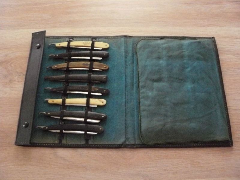 Приобрел кожаный планшет для ноутбука, переделал его под дисплей для бритв.