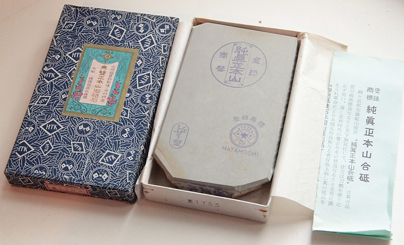 Быстро работает.Поверхность гладкая и шелковистая на ощупь. Особенно эффективен при использовании Асано нагура. Суспензия от нагура не смешивается с зерном от самого камня. Суспензия молочного цвета. Выдаёт очень хороший результат. Родная коробочка в очень хорошем сохране. Породистый, очень приличный камень для истинных ценителей.