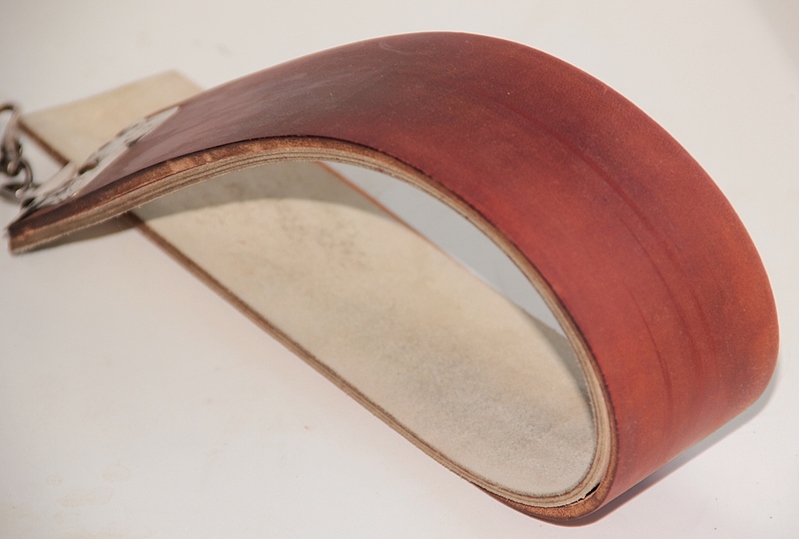 Ремни выполнены из высококачественной лошадиной кожи растительного дубления. Кожа кардинально отличается от крс, поверхность очень гладкая, кожа пластичная и плотная. Лицо подшлифовано до рабочего состояния. Работать на таком просто детский восторг! Разогревание ладонью перед правкой происходит на порядок быстрее чем у коровки. Ширина рабочей части 75мм.