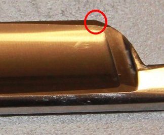 Re: Заточка "кривой" бритвыНа самом деле обратной улыбки нет. Это впечатление создает округлая фаска с выгнутой (в прошлом) стороны лезвия - с этой стороны снималась середина. Уголок уберу. Видели бы вы какой УГОЛОК получился ко кончике! Сделал небольшое закругление, чтобы его убрать.