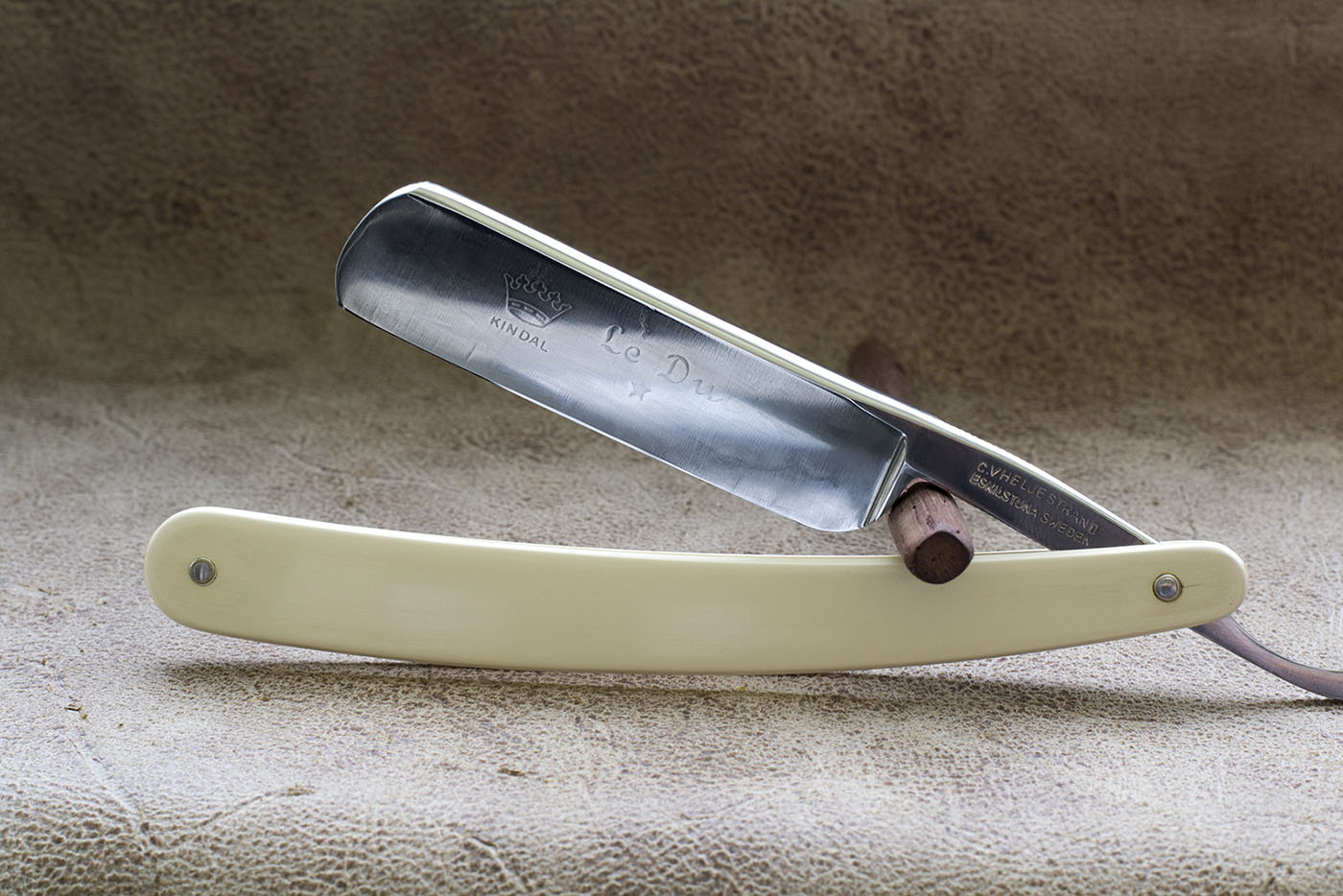 Шведская бритва от пожалуй самого известного производителя в Швеции. Бритвы сделаны для продаже во Франции в магазине Магнуса Киндала о чем свидетельствует надпись а полотне. Ширина 6/8, вогнутость - почти клин. родная рукоять из целлулоида, отличная геометрия. Бритва заточена и готова к бритью, прекрасно подойдет для новичка. Продано. Spoiler Show
