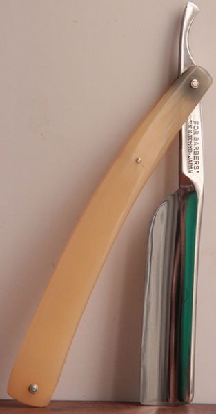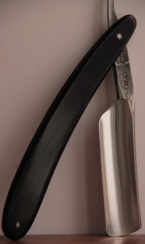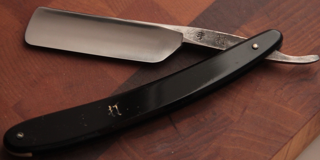 Совершенно нетронутая бритва ни временем, ни заточными камнями. Как по мне, так не только исключительная по красоте бритва, но также и отличный инструмент в опытных руках. Прекрасное, мягкое бритьё. Проверено не раз.