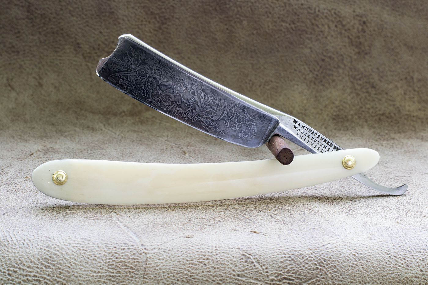 Искомый мной очень давно - Рог Изобилия от Wade&Butcher Новая оправа из кости верблюда, новые шайбы бычий глаз. Детальность травления просто поразительна, взглядом можно вычленить желуди, колоски, грозди и соцветия. На мой взгляд - лучший и самый позитивный мотив для травления, встречающийся на старых бритвах Spoiler Show Re: Ручка (оправа) бритвы - изготовление/ремонтЗачетный Butcher...!!!