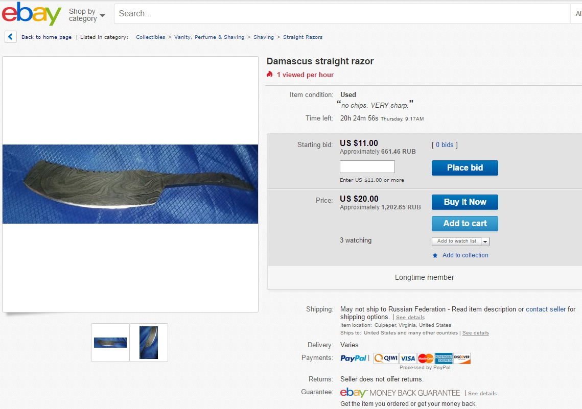 Очередной "дамаскус стрейт рейзор". Парень ещё и описание забавное добавил "I never had time to finish."