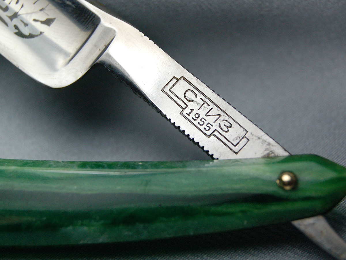 Полировал месяца 3 назад такую, только ручка плоская из коричневого "полового" пластика. создалось впечатление, что трофейную бритву заклеймили Стизом,..металл не советский будто,...может не только технологии вывозились из германии - но и вагончик другой заготовочек..?