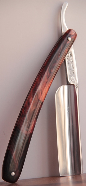 Совершенно нетронутая бритва ни временем, ни заточными камнями. Как по мне, так не только исключительная по красоте бритва, но также и отличный инструмент в опытных руках. Прекрасное, мягкое бритьё. Проверено не раз.