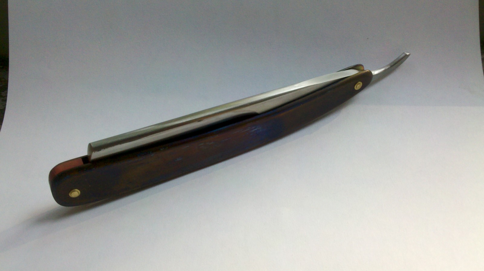 Re: Мечтаю изготовить бритвуБритва японского хирурга. Клинок - нерж "кастрюльная" , режущая кромка - нитробе77, ручка - титан немного нагретый паяльной лампой. Кованина на камисоре должна быть по определению, так что жалобы не принимаются.