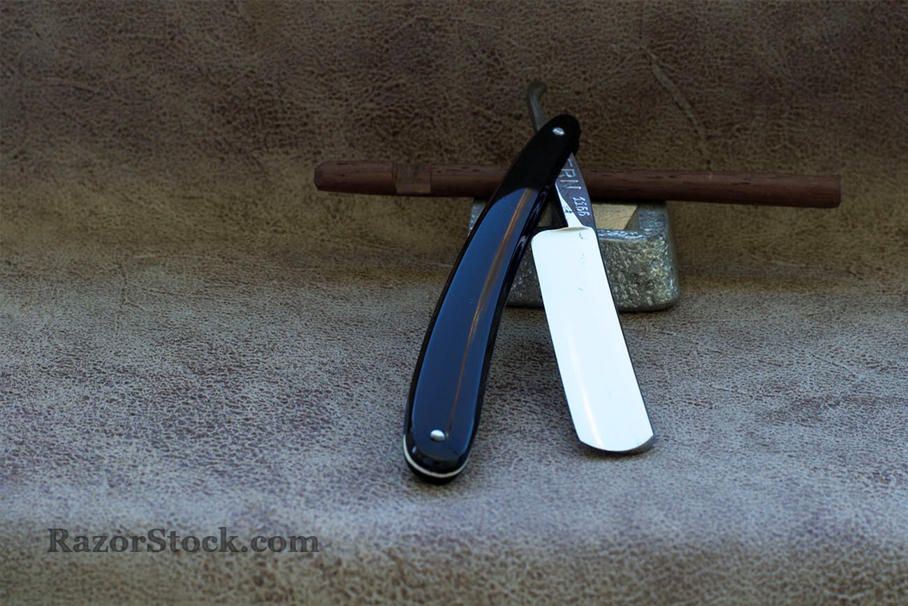 Немецкая опасная бритва из города Золинген (Solingen). Бритва произведена в 20-40 годах 20 века . Вогнутость 3/4, ширина полотна 15 мм. (5/8), спинка 4 мм. Имеет родную рукоять из целлулоида, никогда не была в использовании, поступила ко мне с заводской заточкой, была переточена и подготовлена к бритью. С бритвой решил ничего не делать, оставил на полотне некоторые следы времени, родные пины без шайб менять не стал, так как эрл бритвы чистый. Отполировал полотно и рукоять вручную и заточил. Готова к бритью. Рекомендую новичкам в качестве первой бритвы, так же годится для окантовки бороды. Продано. Spoiler Show