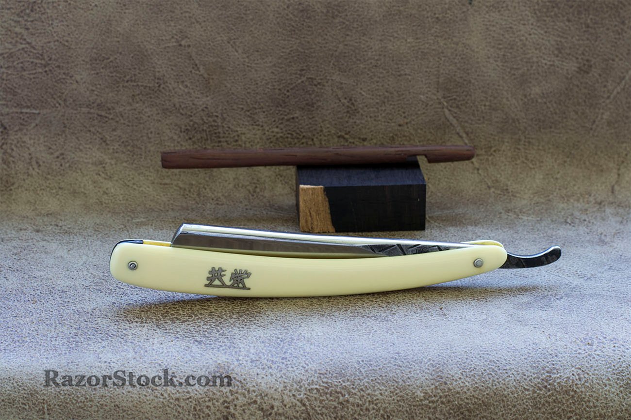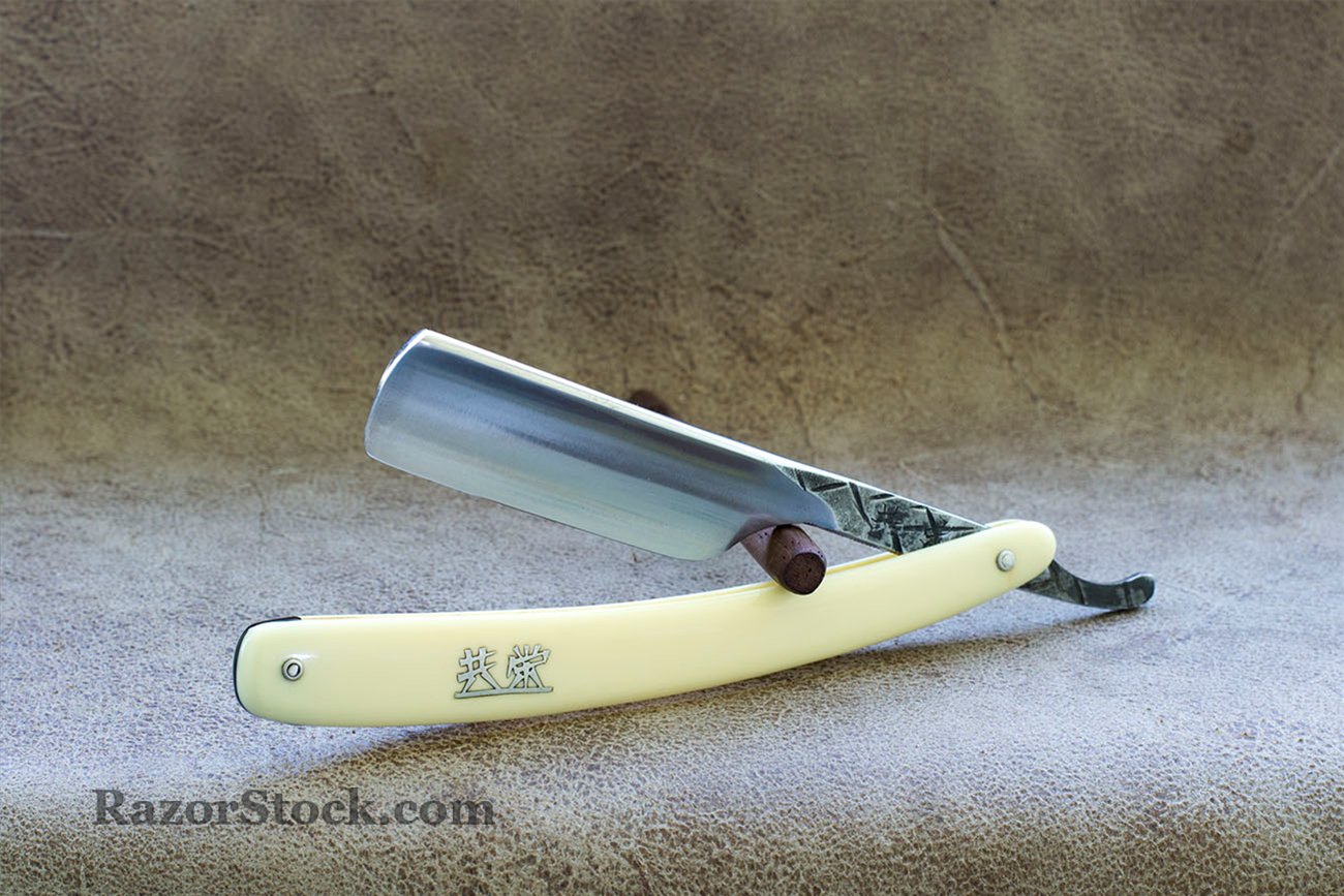 Японская опасная бритва бренда 共栄-Kyōei-" Взаимное процветание" . Бритва не была в использовании, у меня прошла полировку и заточку, не разбиралась. На эрле следы ковки и плохо читаемые иероглифы полученные ударным клеймом. Бритва произведена в 50-60 годах 20 века. Короткое полотно бритвы в сочетании с длинным эрлем дает удобство в использовании. Отличная геометрия полотна, режущая кромка едва видима и равномерна по всей длине. Бритва заточена и готова к бритью, отличный экземпляр в коллекцию. Бритва Массивная и широкая, несмотря на короткое полотно! прошу обратить на это внимание так как не всем покажется это удобным, ширина полотна 22 мм. (7/8) Спинка 6.6 мм., вогнутость - 1/4 . Продано P.S.: Спасибо камраду Unsui за помощь в переводе. Spoiler Show
