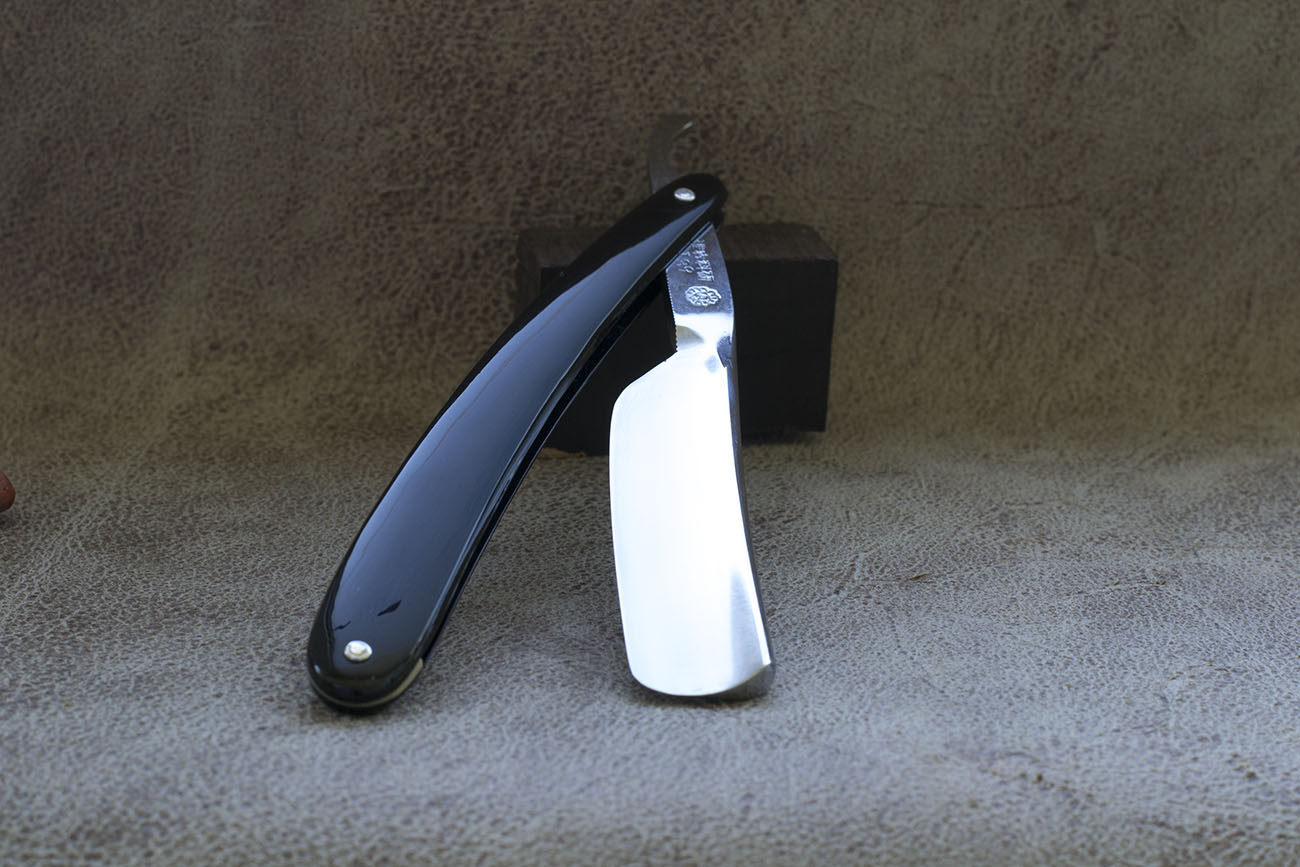 Бритва изготовлена в Германии по заказу John Pritzlaff Hardware Company( информация о компании https://milwaukeehistory.net/john-pritz ... e-company/" onclick="window.open(this.href);return false; ) На полотне глубокое травление Splendid, вогнутость 1/1, ширина 6/8. Очень красивая форма полотна, отличная геометрия, рукоять из эбонита. На конце хвостовика стоит ударное клеймо в форме дерева. Точно такое же дерево является зарегистрированным товарным знаком Heinr. Boker, что по моему скромному мнению достаточно для причисления данной бритвы к изделиям фабрики Бёкера. Бритва прекрасна во всех отношениях, не имеет следов использования, заточена и готова к бритью. От родной коробки осталась только нижняя часть. Продано Splendid Show