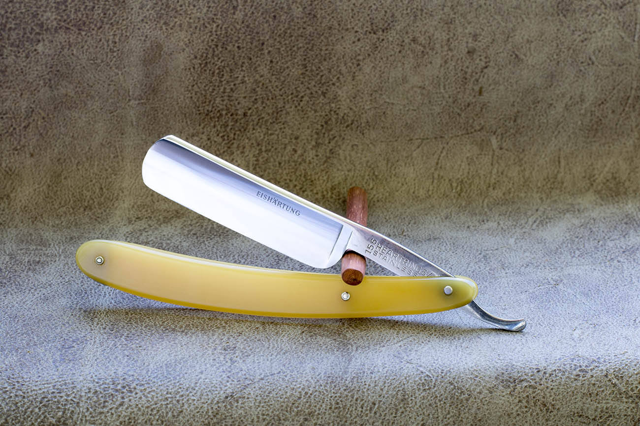 Среднеразмерный шведский клин от известного производителя J.A. Hellberg. Бритва без каких либо следов использования, точилась мной впервые, проведена полировка с разборкой. Рукоять из целлулоида Период производства - конец 19 - начало 20 века. Ширина 5/8, идеальная геометрия. Ввиду того что скопил некоторое количество старых шведских клинов - цена продажи изначально невысокая. Тем не менее считаю подобные бритвы очень качественными и очень удобными. Продано Хеллберг Show