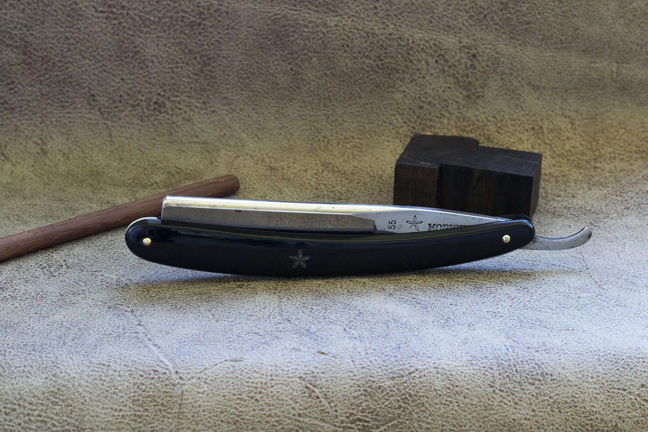 Японская бритва середины 20 века, изготовлена из японской традиционной стали - Тамахагане. Бритва не была в использовании, заточена мной впервые, имеет прекрасню геометрию и удобный эрл с выемкой. Ширина полотна 18.8 мм(6/8), спинка 5.4 мм. Бритва отлично подойдет новичку в качестве первой. Так же будет интересна для любой коллекции. Бритва из Тамахагане является довольно редким явлением и будет прекрасно дополнять любую коллекцию. Продано Spoiler Show