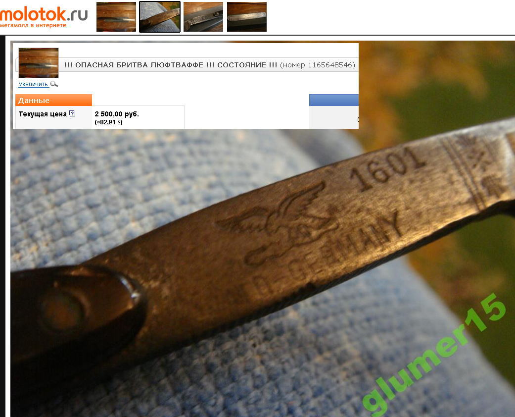 Привожу пример! И таких тьма: http://molotok.ru/show_item.php?item=1160641978" onclick="window.open(this.href);return false; продаётся давненько, так что не надо... Я увидел первый раз больше полугода назад: http://www.britva.ru/forum/viewtopic.php?p=11827#p11827" onclick="window.open(this.href);return false; Что продаётся? Нет только выставляется... За державу обидно... Ремонт опасных бритв, звонить с 11-00 до 23-00, +79267729357, (viber, whats app, telegram, VK), спросить Олега.