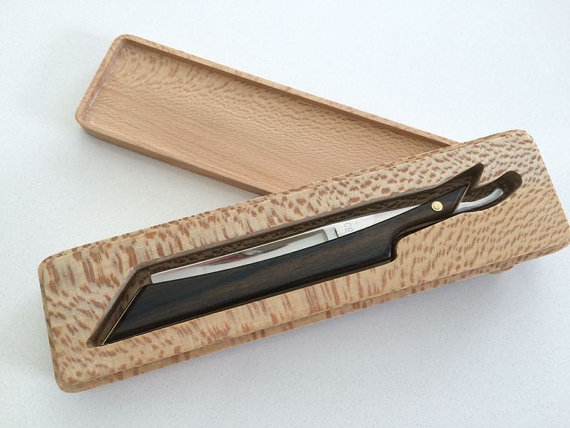 В общем из любого материала в 3д даже по фотографии бритвы в разных ракурсах если иметь её с размерами, то можно написать программку для станка так, чтобы изготовить именно индивидуальную коробочку с крышечкой под конкретную бритву, или же под усреднённую бритву ячейку кофра отфрезеровать. Из бальсы бы неплохо смотрелась и ощущалась бы...
