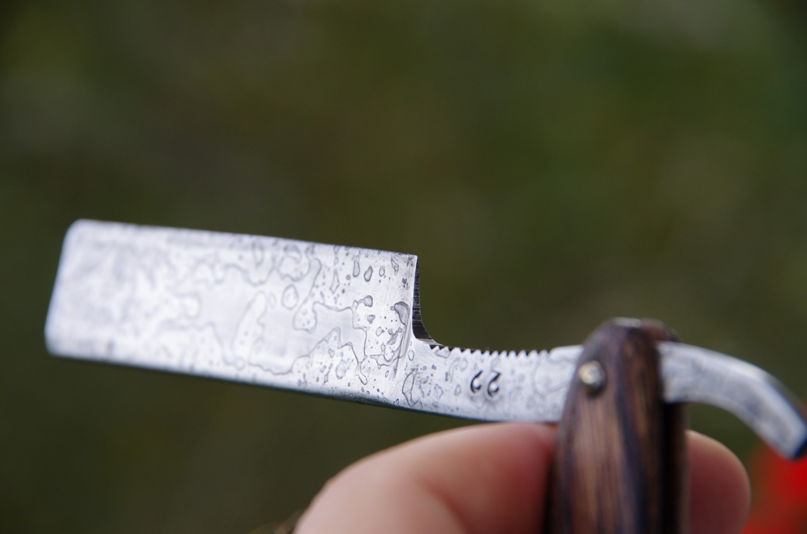 Кто-то хорошо поиздевался над этой бритвой. Сточен обух, сточена ступень. Зубья на нижнем эрле - мейд ин надфиль и слабоумие. Кастом типа.