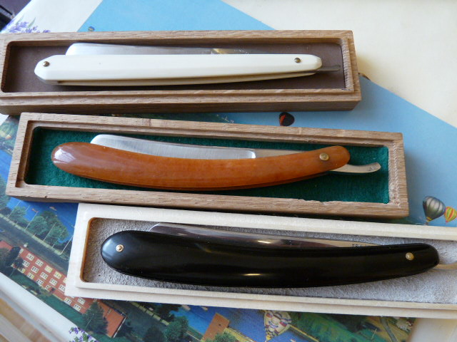 К сожалению они все не особо типовые, так что если делать, то нужно понимать размеры, ибо у меня камисори нет (чтоб модель зафиксить точно или хоть как-то в футляре)... Или делать с большим допуском (всё равно нужны размеры - габариты клинка и ручки и)... Я вот думаю, что смогу сделать футлярчик как у камрада - сургутянина micB - как тут http://britva.ru/forum/viewtopic.php?f= ... &start=300" onclick="window.open(this.href);return false; типа Пумы, причем есть мысль как сделать и направляющие, чтоб входила/выходила бритва из футляра как маузер из деревянной кабуры - плавно и приятно и без смазки. И да, это если будет, то из 2х частей - склейка. Как вариант есть мысли, что можно сделать составной футляр - типа базовый блок, в который вставляется вкладыш или на 1у лежащую бритву или на 2е стоящие (они как раз по габаритам совпадают), и закрываются крышкой. Типа как у TI - http://shop.britva.ru/detailed.php?pid=0057900#head" onclick="window.open(this.href);return false; или http://shop.britva.ru/detailed.php?pid=0057500.." onclick="window.open(this.href);return false;. Или уже вполне готов на футлярчик для нескольких бритв - 2...3...или более, не определился с деревом. Есть ещё задумки...