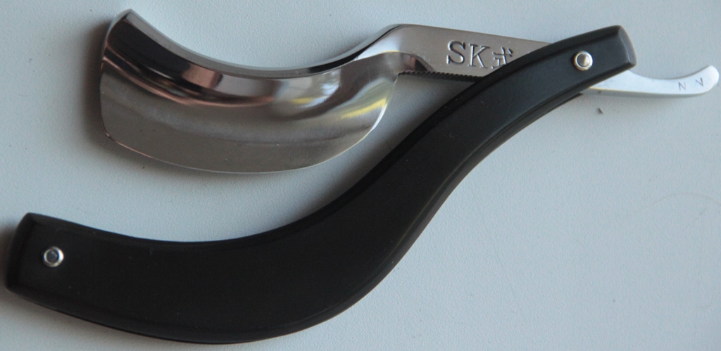 Re: Бритва до... и после...Опытный пользователь без труда побреется этой бритвой ,вот с такой оригинальной формой полтна. Конечно, немного непривычно будет сперва. С заточкой тоже никаких проблем не возникает. Всё, как обычно. Просто приходится более тщательно обрабатывать кромку на абразивах, т.к. пятно контакта камня с металлом минимальное.