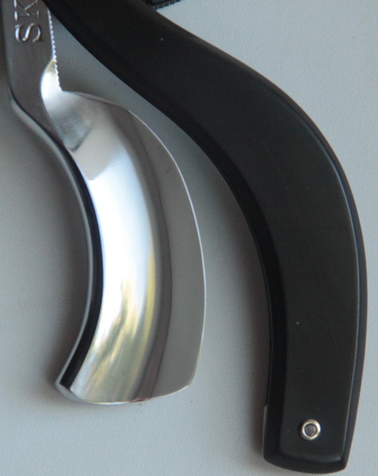 Re: Бритва до... и после...Опытный пользователь без труда побреется этой бритвой ,вот с такой оригинальной формой полтна. Конечно, немного непривычно будет сперва. С заточкой тоже никаких проблем не возникает. Всё, как обычно. Просто приходится более тщательно обрабатывать кромку на абразивах, т.к. пятно контакта камня с металлом минимальное.