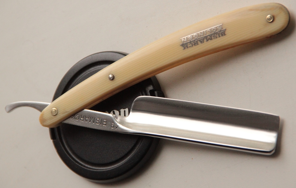 Бритва в очень хорошем состоянии.Ничего с полотном не делал. Бритва не разбиралась.Красивая,пластиковая,трёх-пиновая, "под дерево" оправа.Сталь и кромка чистые, без проблем.Идеальная геометрия.