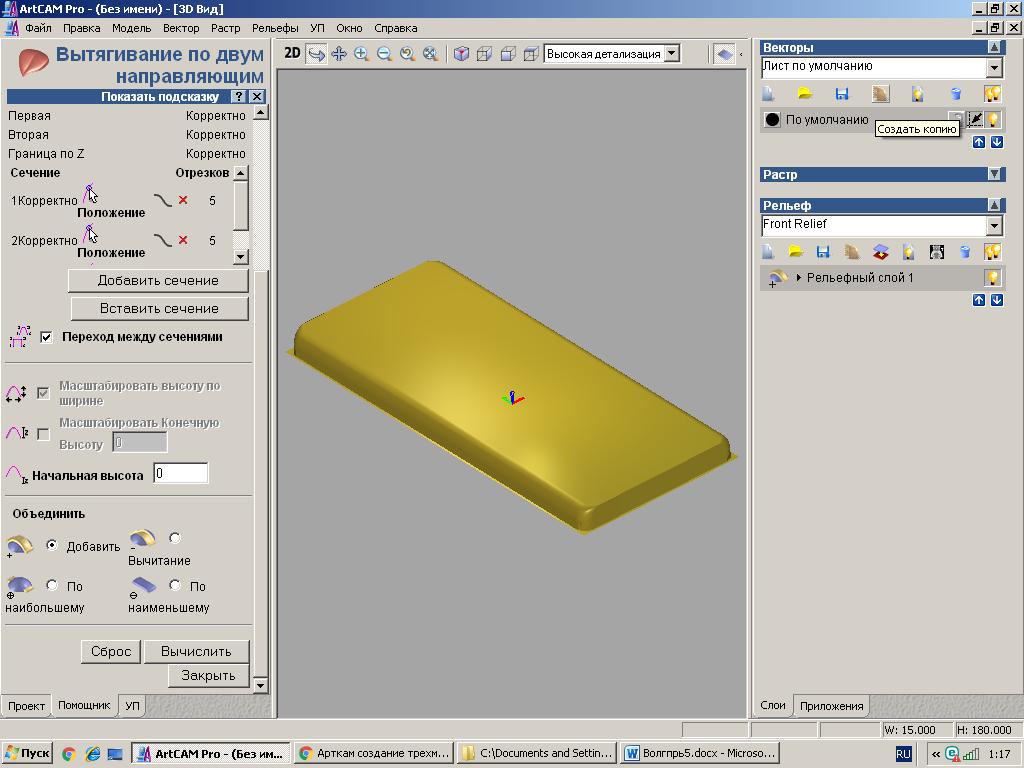 Поскольку размеров камисори своей ты не дал, то вот слепил за пол-часа нечто под камисори типа (под фрезы и дерево, что у меня есть сейчас): размеры использованных выборок: 1. под клин - 60х6х25мм 2. под ручку - 110х10х12.5мм (2выборки и 2перехода) 3. 1й переход - 8х3.5х6мм (опирается шейка бритвы - между ручкой и клинком) 4. 2й переход - 8х10х8мм (опирается/фиксируется боковыми сужениями/если надо/ ручка бритвы, ближе к концу ручки) 5. Общая длина (габарит) камисори - не более 170мм 6. размеры пенала (низ) - 22х180х27.5мм 7. крышка - 22х180 х 10мм Итого, высота пенала со вставленной крышкой тут - 27.5+10-2=35.5мм тогда габариты пенала с закрытой крышкой итоговые - 22х180х35.5мм Это по самым простым стратегиям обработки - "2д выборка" двумя фрезами - d6 & d3.175. Крышку можно нарисовать исходя из реально нужных параметров ручки - бывают ручки у камисоров и тонкие и толстые. В принципе, если не нужно ничего "рисовать на корпусе", то и всё (кстати для меня это ещё несколько проблемно в связи с переустановкой заготовки и её центрированием, но можно и "порисовать-повырезать", в принципе, например "To: Volgar" ) на крышке. Загружаю постпроцессор в станок и за пол часа всё будет готово, как-то так, набирал этот текст дольше. PS добавил 2 вида крышки - сечение и аксономеитрия...
