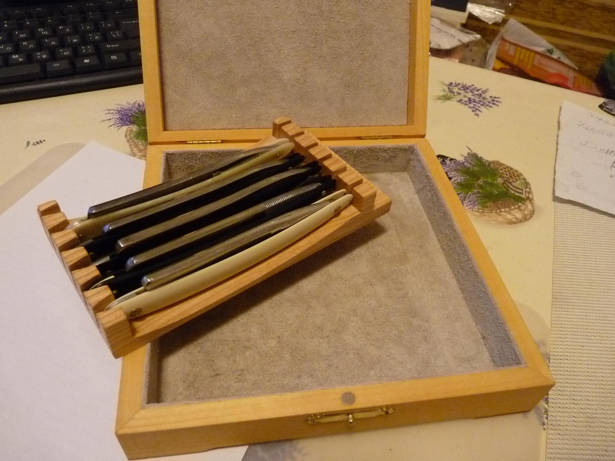Попробовал сделать вкладыш из ясеня, в данном случае, для своей коробки, купленной в хобби-центре когда-то, кажется (на первом фото - то, что было "до того, как...").