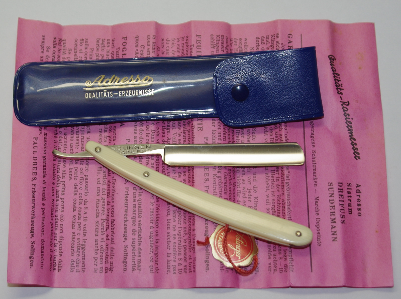 Продам Adresso 27 INOX 4/8 Solingen великолепная нержавейка с криогенной обработкой бритва в девственном сохране. Гарантия повышенной девственности это медалька на красной веревочке С бритвой ничего не делал. Есть минимальные следы потемнения, НО т.к. это нержавейка то они уйдут от простого протирания любой безабразивной пастой типа флитца. По желанию заточу заново (т.к. за десятилетия перекладывания бритвы все таки первичная острота слетела) Цена 8000 рублей
