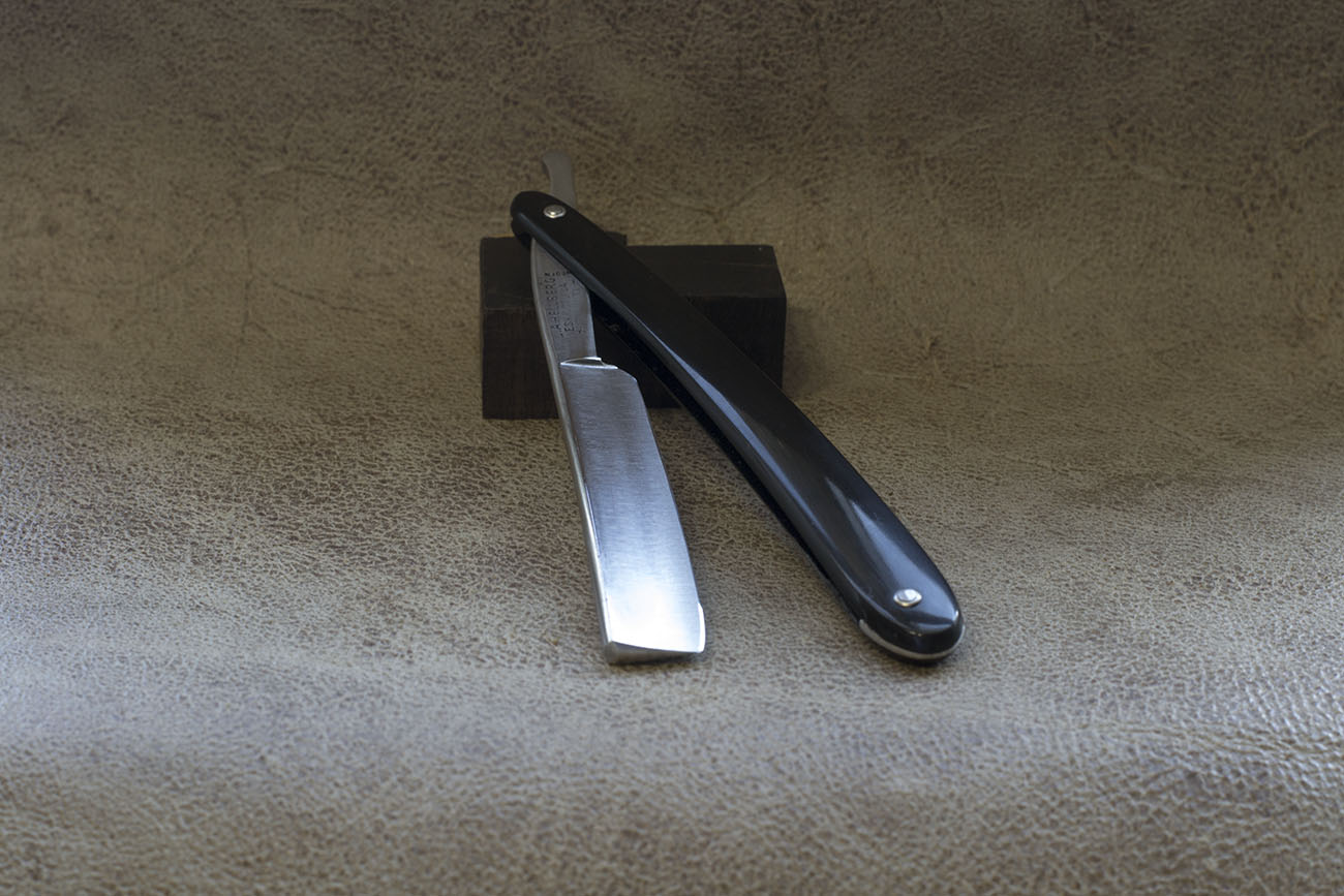 Рад представить крайне интересный французский фреймбэк от одного из наиболее известных и старых производителей бритв во Франции. Для меня Dumas 32 более известен как изготовитель бритв с вогнутостью клин от начала до середины 19 века, с разной шириной полотна, хвостовиком разного вида или вовсе без него. Во время поисков информации, наткнулся так же на интересные сведения о том, что фирма существовала как производитель ножей и различного режущего инструмента, по некоторым данным, является наиболее старым, в Тьер, брендом данной направленности, основание которой восходит аж к 16 веку. Кроме того марка существует по сей день, продолжая выпуск своей продукции, о производстве опасных бритв конечно же речь не идет. Фреймбэк является редкой формой полотна для данного изготовителя, на моей памяти это и вовсе первый образец попавший ко мне в руки. Кроме того, форма не совсем типична для французских фреймбэков и скорее отдаленно напоминает шведские бритвы подобного формата. Ширина полотна 19.5 мм, воронение. Родная роговая рукоять, которую удалось выпрямить, но в дальнейшем нет никаких гарантий от небольшого искривления. Клинышек –кость. Отличная сталь и хорошая геометрия, бритва заточена и готова к бритью. Продано Dumas Show