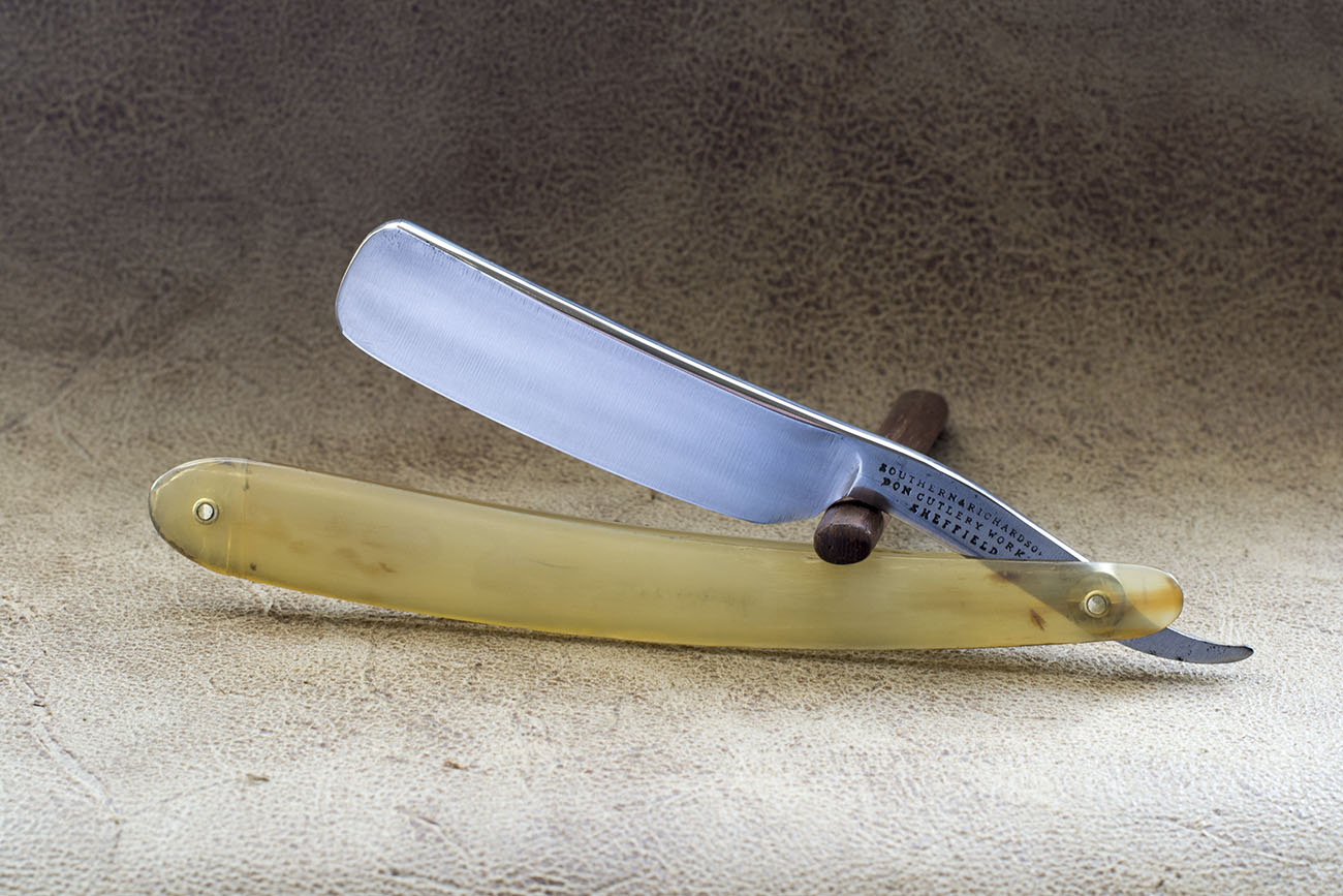 Бритва второй 19 века, от одного из моих любимых производителей того времени. Самобытный дизайн, дол интересной конструкции, свойственный бритвам от Томаса Тернера и армейским бритвам от Томаса Варда. Ширина полотна 21 мм. Прекрасная геометрия, сталь по качеству не уступающая более известным шеффилдским производителям. Бритва точилась мало, возможно не была в использовании, заточка имела признаки заводской, без сведения кромки. Родная роговая рукоять без клинышка. Прекрасно подойдет новичку, так же отлично дополнит коллекцию старых английских бритв. Укомплектована родным чехлом на 2 бритвы, второй экземпляр к сожалению не попал ко мне в руки. Заточена и готова к бритью. Продано. Spoiler Show