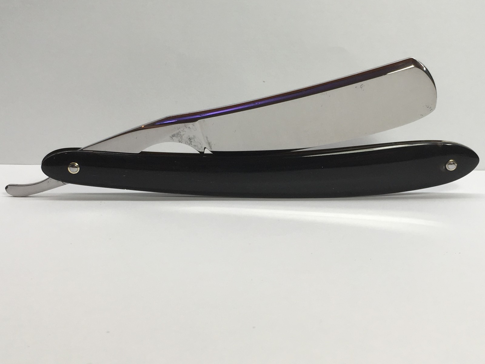 Re: Бритва до... и после...Хорошо постарался, но оставил на полотне, обушке и хвосте черные пятна - даже, если не будешь бриться, то вылезет ржа и грани зализал малость.
