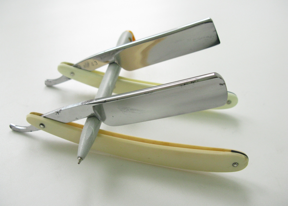 ВСЁ ПРОДАНО Kinsyo Razor, Japan. Фрейм, новый, в коробочке. Цена - 8000 за каждый + доставка. ПРОДАНО Бритвы пока не заточены, по умолчанию будет на моё усмотрение, но если есть пожелание - озвучьте. Хорошее предложение №2 ВСЁ ПРОДАНО Dorko + R.Herder, Germany. Классические немецкие бритвы, в очень хорошем состоянии, но следы времени и некоторые царапки присутствуют. Цена - 6500 за каждую + доставка. Дорко ПРОДАНО Хердер ПРОДАНО Бритвы пока не заточены, точнее без доводки, по умолчанию будет на моё усмотрение, но если есть пожелание - озвучьте. Хорошее предложение №3 ВСЁ ПРОДАНО Kamisori, Japan. Ё-камисори, в хорошем состоянии, но следы времени и некоторые царапки присутствуют. Бритва на заднем плане кажется меньше, но одинаковы в размере - длина РК ок 50мм, по ширине и толщине без уточки, в принципе почти не пользованные бритвы, только время их поело немножко. Цена - 4500 за каждую + доставка. Бритвы пока не заточены, точнее без доводки, по умолчанию будет на моё усмотрение, но если есть пожелание - озвучьте.