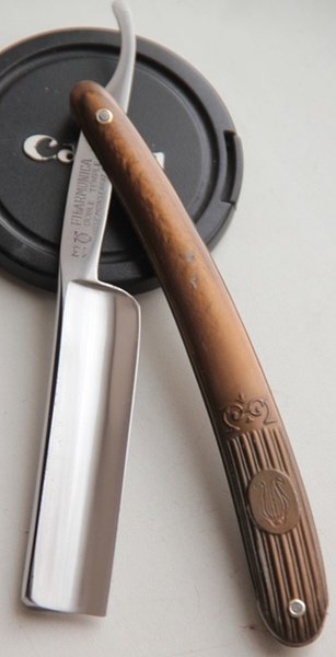 Ширина полотна-21.5 мм Толщина обушка-6.5 мм Форма лезвия-полу-клин Серебряная углеродистая сталь, как наиболее удачная для бритвенных задач. Середина 20-го века. Бритва находится в очень хорошем состоянии. Малопользованная.Снял оправу, немного освежил металл полотна и очистил окисление в районе осевого пина.Собрал снова, сохранив оригинальные пины и добавив внутренние шайбы.Сталь и кромка чистые.Идеальная геометрия полотна.Кромочка равномерна по всей длине.Заточена и готова к пользованию. Бритва крупная, довольно тяжелая,с приятным и бесшумным бритьём. При покупке бритвы не забывайте и про качественный ремень от нашего форумного мастера. Цена-8500 р с доставкой.ПРОДАН Внимание! Важная информация! Spoiler Show