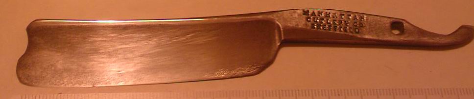 Re: Наши работы (галерея достижений)Через десятые руки ко мне попалась бритва. Бритва была очень глубоко поражена ржавчиной , но сама она никогда не использовалась - обушек и кромка не тронуты , она не прошла даже заводскую заточку скорее всего .. Бритва имела заводской брак (фото 1) , если её положить плашмя на обратную сторону , 60-70% кромки весит в воздухе , а около эрла расстояние было около 2-3 мм .