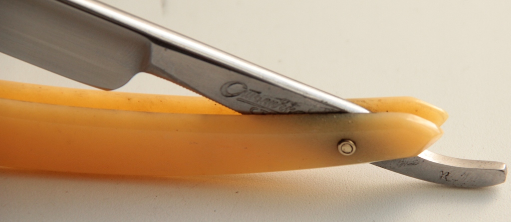 Ширина полотна-20.5 мм Толщина обушка-5.2 мм Полная вогнутость. Углеродистая сталь. Середина 20-го века. Бритва в очень хорошем состоянии,с минимальными следами использования.Не разбиралась. Только немного почистил полотно от древней патины. Сталь и кромка чистые, без проблем.Красивая, трех-пиновая пластиковая оправа.Заточена и готова к бритью.Будет неплохим вариантом для новичка. Цена-4800 р с доставкой.ПРОДАН Spoiler Show