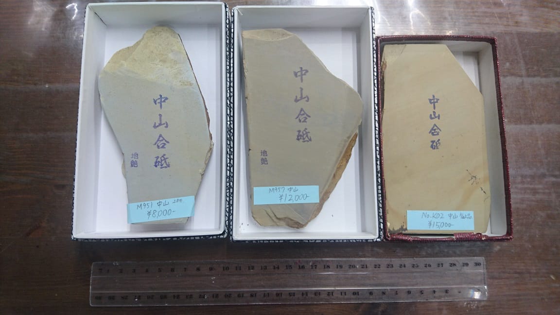 Цели сравнить "где/у кого дешевле/дороже камни" - у меня нет. Я всего лишь уточнил, сколько потратил на эту покупку в пересчете на $, потому что упомянутая в обсуждении цифра "$200" была не совсем точна. Я думаю, это многим интересно - сколько реально стоит "бритвенный" камень в специализированном японском местном магазине, в офф-лайне, не в интернете. Кстати, когда я сам был в Токио год назад, видел в небольших ножевых-заточных магазинчиках камни наладонного размера в среднем за 5000 иен. Возможно, они не сильно отличаются от нынешнего за 9000, а может и совсем не подходят А вот нагуры стоили примерно так же, как и сейчас купил. Тогда тема заточки меня не волновала, но посмотреть-пощупать я зашел в несколько магазинчиков. Про Morihei я тогда еще не знал и у них не был. Вот такие камни видел в ножевых магазинах в 2017 году летом: