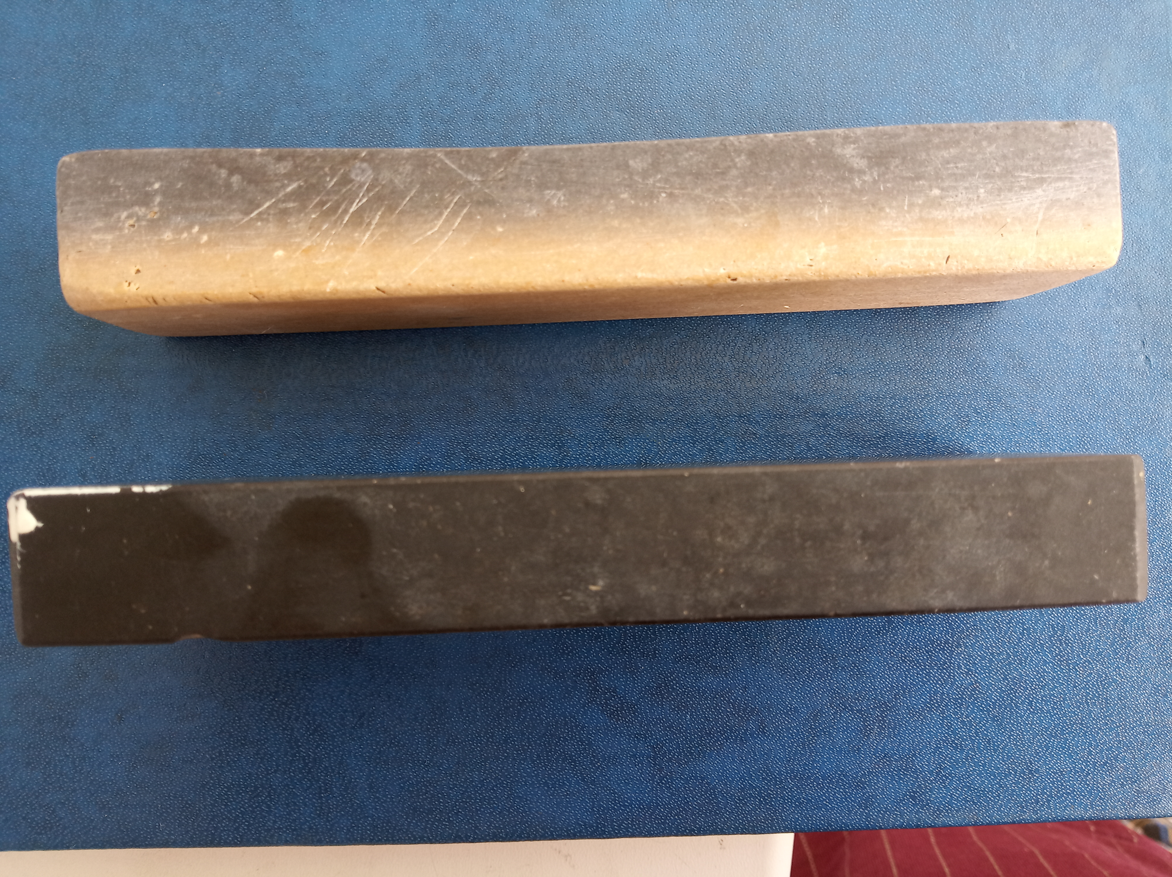 Самое интересное, что такой камень у меня уже есть, давно. Это старый семейный брусок. Мама говорит, что помнит его с детства. Твёрдость такая, что он форму с годами не потерял.
