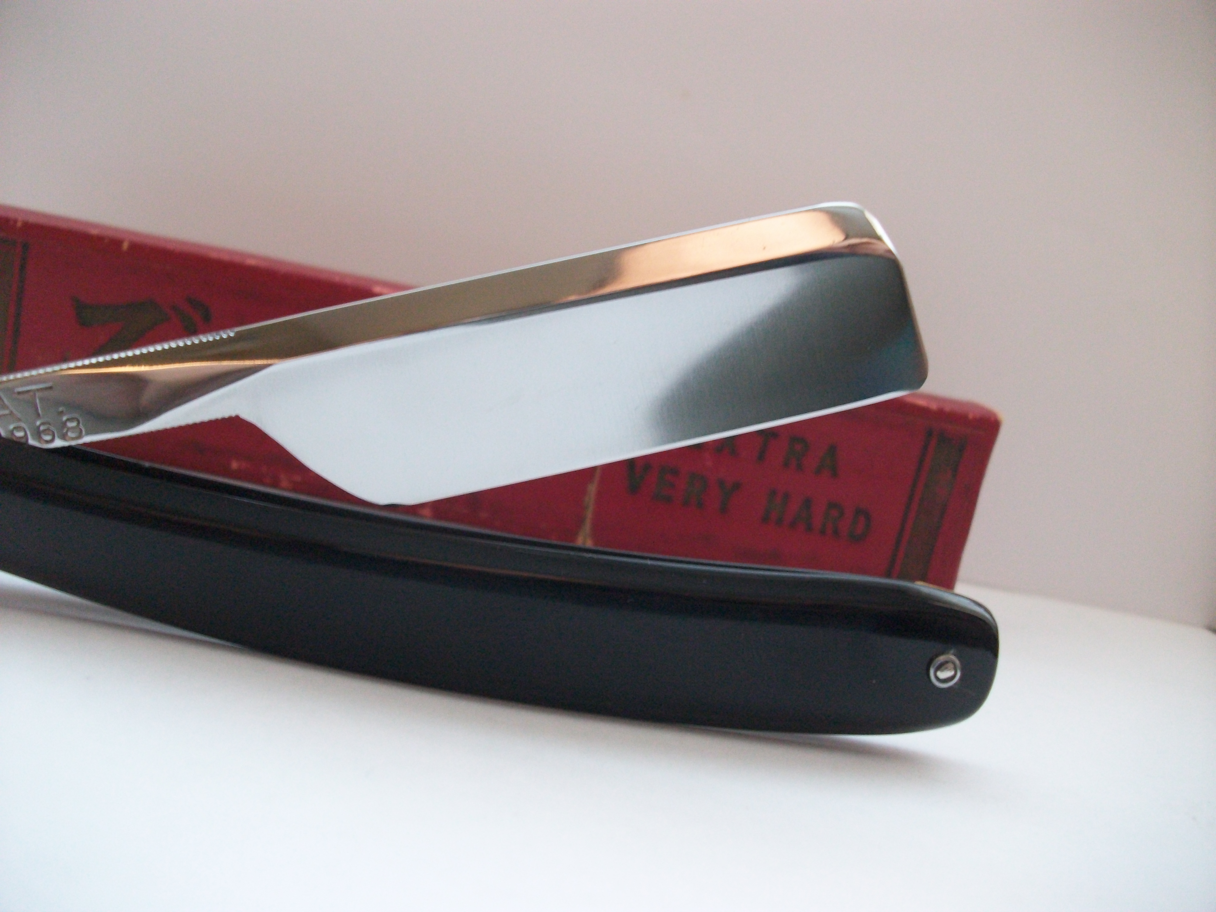 C.V.Heljestrand Абсолютное новье, лично снял пломбу при открытии коробочки. Узкая бритва из углеродистой стали, ширина полотна 11мм, ручка пластик. По желанию может быть заточена - включено в стоимость. Продано. Spoiler Show