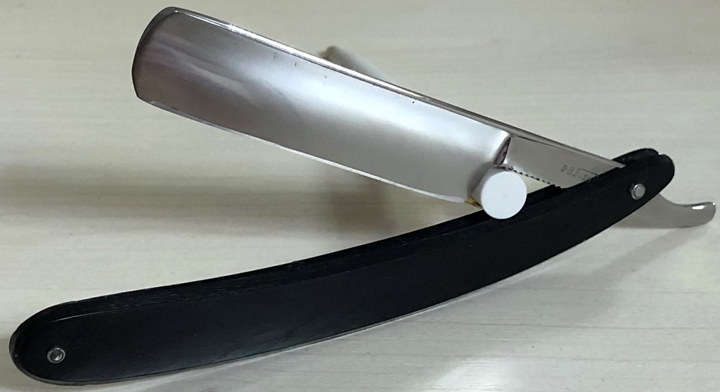 Бритва в прекрасном состоянии, без видимых следов пользования. Разобрал, немного прошёлся самыми тонкими абразивами и снова собрал, заменив пины на немецкие двух-цветные втулки, с добавлением внутренних шайб. Родная оправа также в отличном состоянии. Идеальная геометрия:кромочка равномерна по всей длине и еле заметна. Отличный, достаточно редкий экземпляр, в таком сохране. Не пропустите очень хорошую и недорогую вещь.