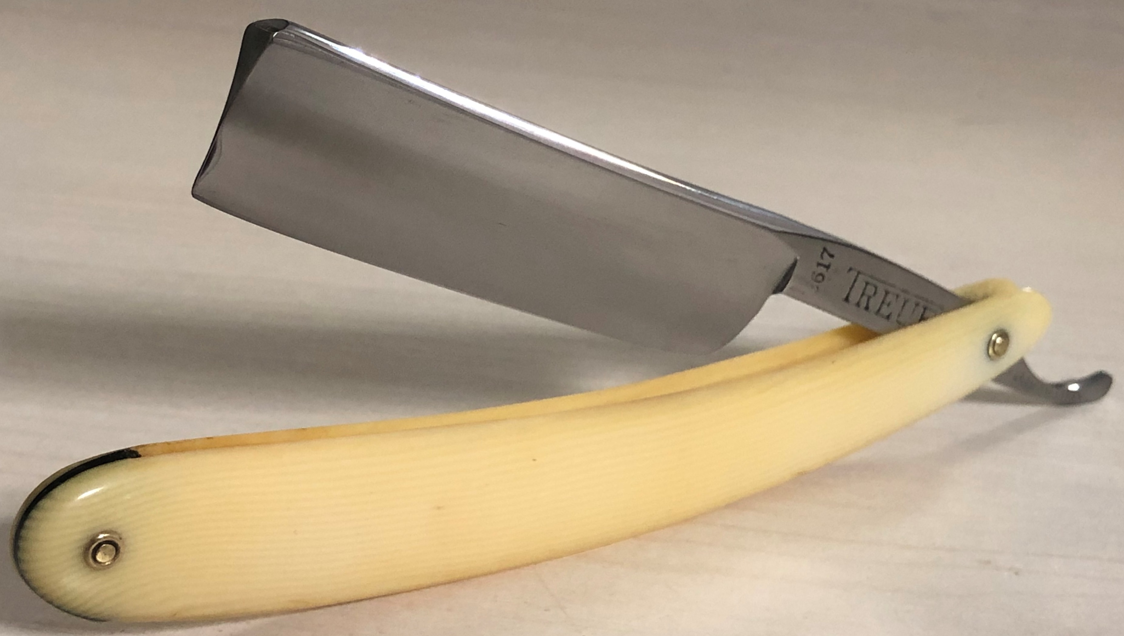 Ширина полотна-20.5 мм Толщина обушка-6 мм Полная вогнутость. Углеродистая,"серебряная" сталь. Примерно середина 20-го века производства. Бритва изначально не имела следов пользования, но требовала косметических работ по восстановлению былого блеска и красоты.Разобрал, немного освежил металл и снова собрал, заменив пины на немецкие втулки.Визуально состояние близкое к идеальному.Сталь чистая, без видимых дефектов. Геометрия также идеальная. Кромочки практически не видно. Ручка широкая, очень удобная.Красивая бритва, возданная в классическом евро стиле, с отменной "звонкой" сталью, будет отличным вариантом для все любителей Бритвы.Заточена и готова к бритью. Цена-7500 р с доставкой.ПРОДАН Внимание! Важная информация! Spoiler Show
