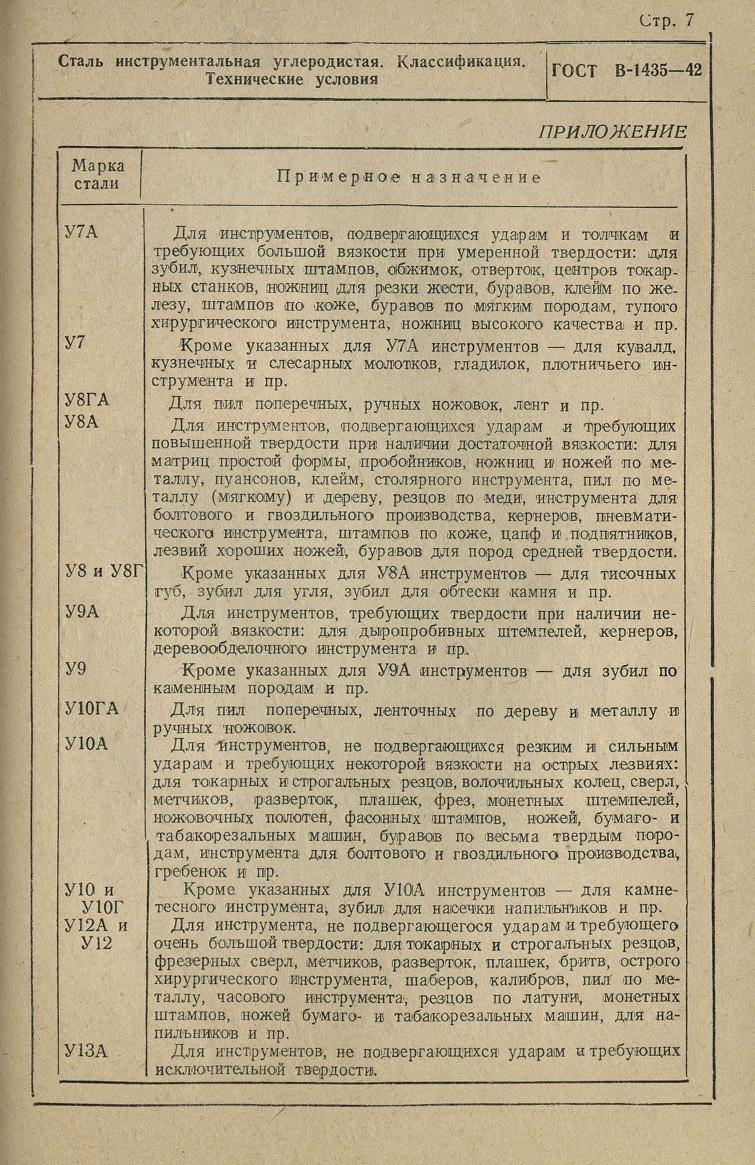 ГОСТ 1942 года, сталь инструментальная углеродистая. Для бритв согласно этому ГОСТу предназначались стали марок У10 У10Г У12 У12А