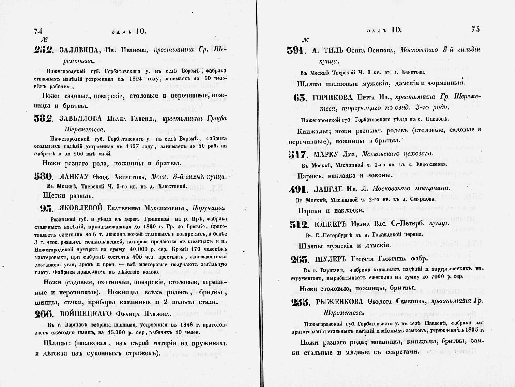 Указатель Московской выставки мануфактурных изделий Российской империи, Царства Польского и Великого Княжества Финляндского : С план. Выставки. - Москва : Унив. тип., 1853 https://dlib.rsl.ru/viewer/01003600096#?page=1 В отличие от выставок конца XIX века, здесь бритвы заявлены уже у большинства участников-ножевиков. Помимо павловских мастеров есть и московские производители бритв - А.Додой-Красовский и Н.Разумов, Г.Шулер из Варшавы и даже из Рязанской губернии поручица Е.Яковлева владела фабрикой на 170 мастеровых и выпускала в числе прочего и бритвы! Интерес представляют и правила для участников и посетителей выставки, в том числе касательно продажи экспонатов. Spoiler Show