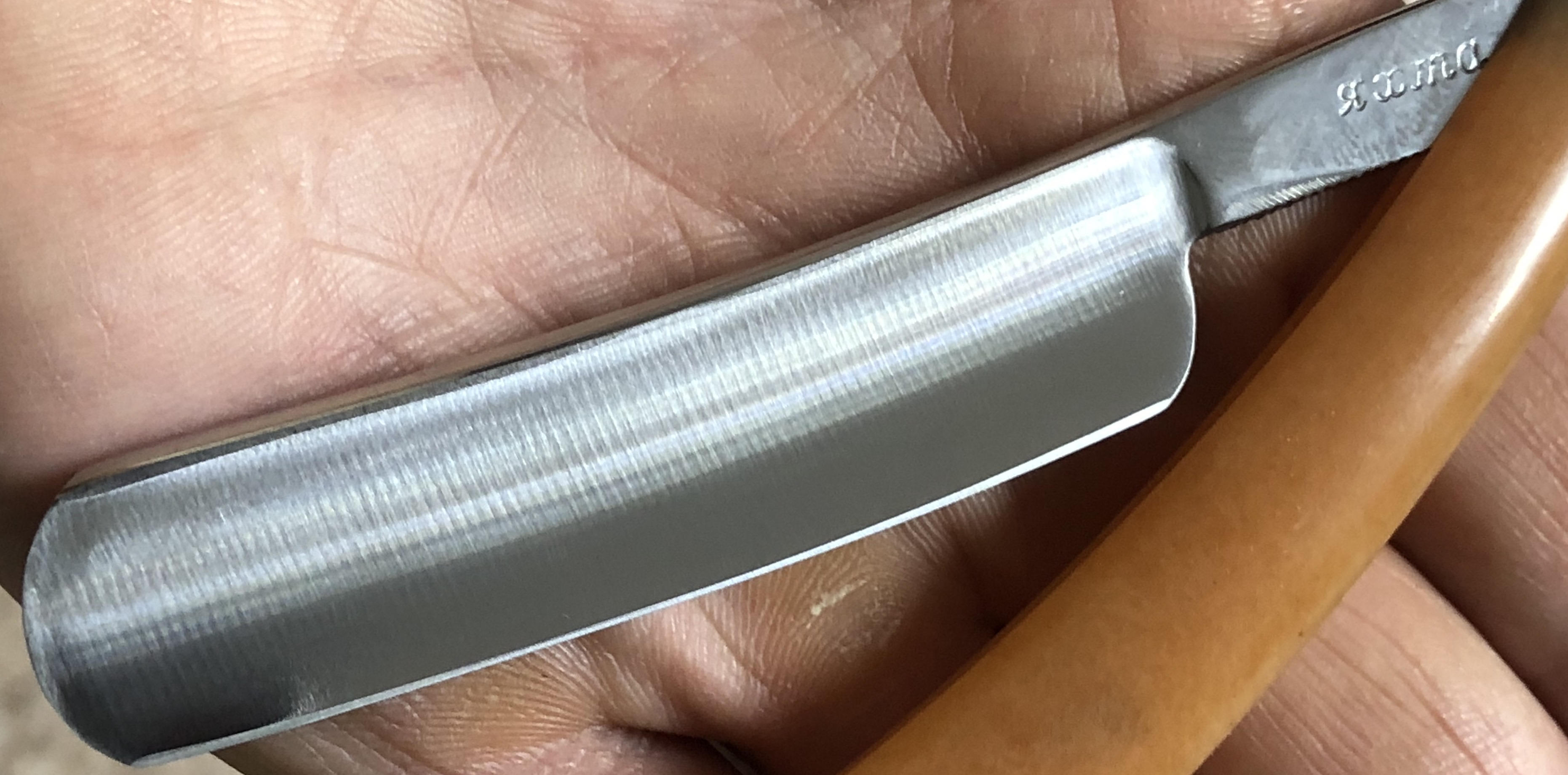 THIERS-ISSARD 69 Ширина полотна-20.5 мм Толщина обушка-5.5 мм Полная вогнутость. Углеродистая сталь. Середина 20-го столетия. Бритва в пользовании не была, но я бритву разобрал,перебрал кривые пины, сохранив родные шайбы и немного освежил клинок от патины. Состояние нетронутой.Сталь и кромка чистые, без видимых дефектов.Идеальная геометрия полотна:кромочка равномерна по всей длине.Ручка родная, исполнена в традиционном французском стиле.Отличная"звонкая" сталь, мягче, чем стали новодельных Иссардов,способна выдавать чистое и приятное бритьё. Будет идеальным вариантом для новичка и просто, в коллекцию.Не пропустите знаменитого француза в прекрасном состоянии.. Заточена и готова к бритью. Цена-11500 р с доставкой.[/b][/QUOTE] ПРОДАН Внимание! Важная информация! Spoiler Show