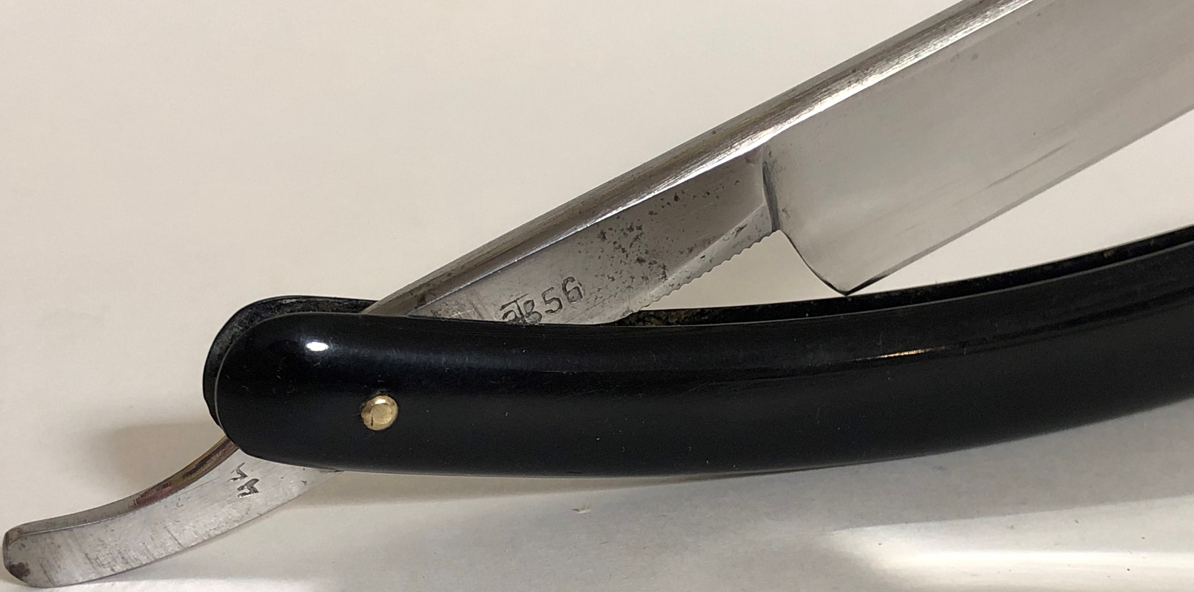 Не разбиралась и не ремонтировалась мной.Все полностью в оригинале, включая коробочку. Родная шлифовка и полировка.Сталь чистая,без критичных дефектов.(несколько "точек времени" на эрле не в счет).Идеальная геометрия клинка. Заточена и готова кбритью.