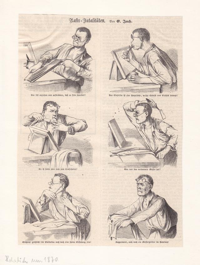 Опасная бритва в искусстве (картины, рисунки, фото, тату)Бритьё со смертельным исходом, юмористическая гравюра на дереве