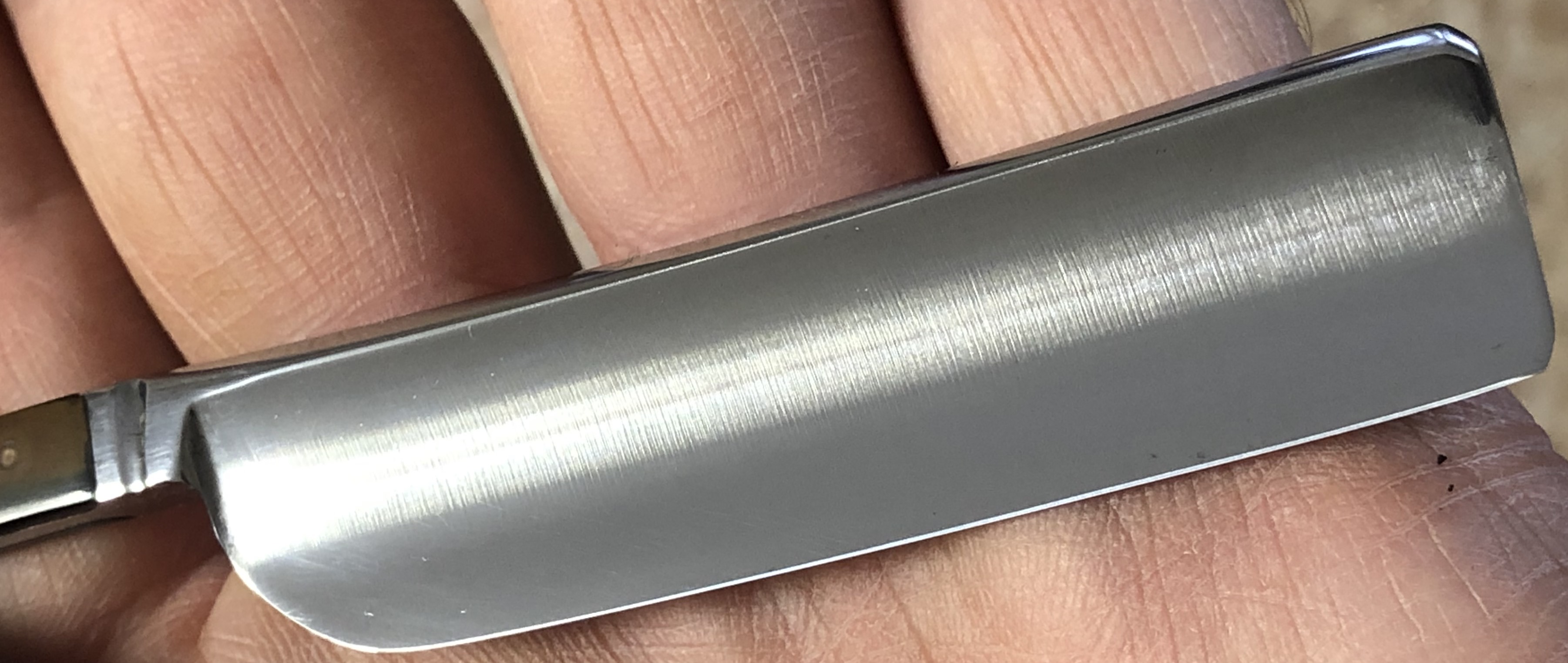Бритва в идеальном состоянии,без следов пользования.С большой долей вероятности вообще не была ещё в деле.Не разбиралась.Немного освежил клинок от патины, на самых тонких абразивах и полирнул.Состояние новой бритвы.Идеальная геометрия:кромочка равномерна по всей длине.Сталь чистая, без дефектов.