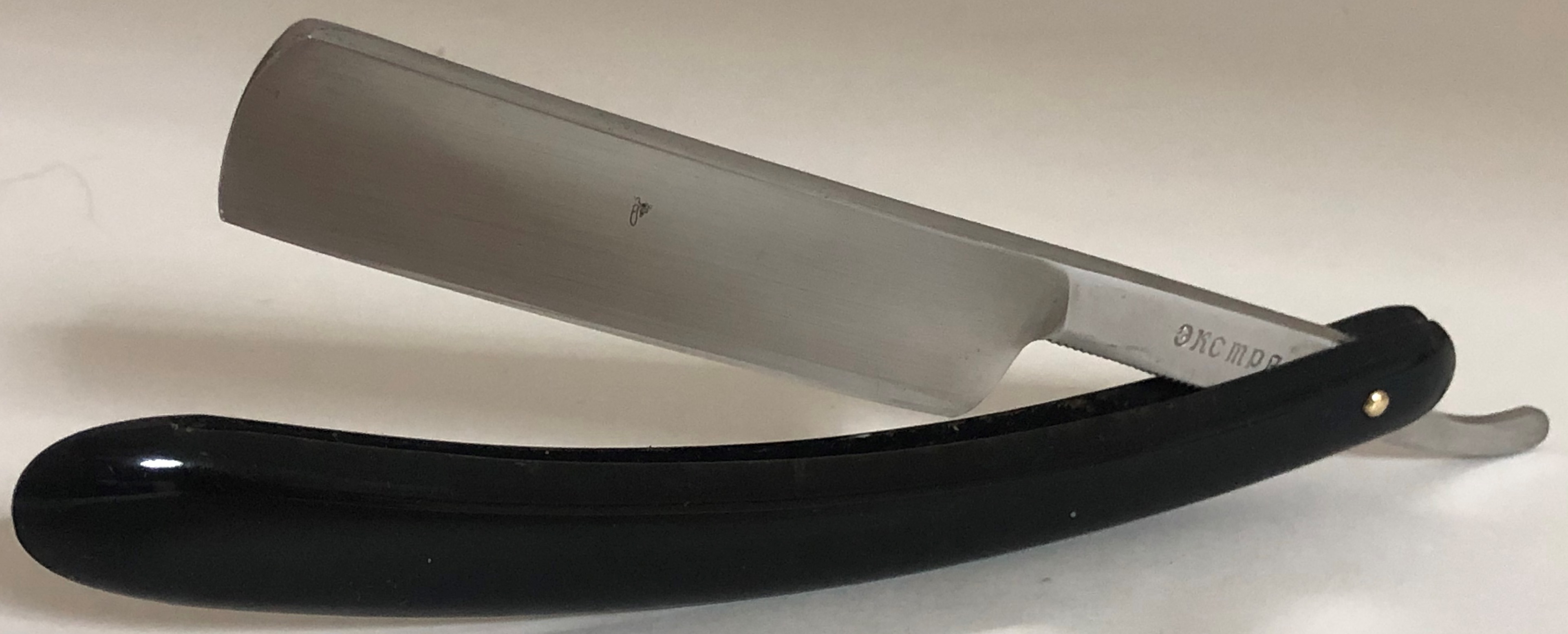 Бритва коллекционного состояния, только отертая от остатков масла. Не разбиралась и не ремонтировалась.С заводской шлифовкой и полировкой. Без видимых дефектов.Крупная и тяжелая пластиковая оправа.Заводская заточка пока не тронута.Перед отправкой будет по желанию заточена, доведена до комфортного бритья, либо заново законсервирована до лучших времен.